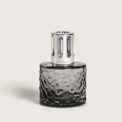 Lampe vendue en coffret cadeau avec accessoires : mèche-brûle-parfum, bouchon diffuseur argent, bouchon, entonnoir + parfum d'ambiance Terre Sauvage 250 ml.