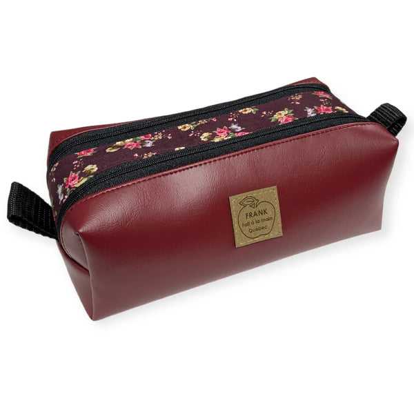 SCOLAIRE SAC & ACC - FRANK COLLECTION ETUI CRAYON VEGAN DOUBLE FLEUR BOURGOGNE