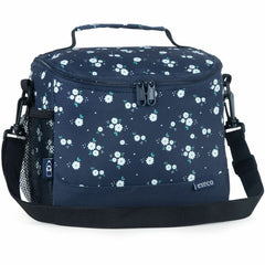 Boîte à lunch isolée grand format large avec grande ouverture Avec une pochettes en filet sur le côté.  Bandoulière amovible réglable incluse Dimensions : 23 x 17 x 15 cm.