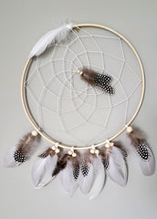- Fait de plumes d'oie et de poulet sur un anneau de bois de 30cm.
